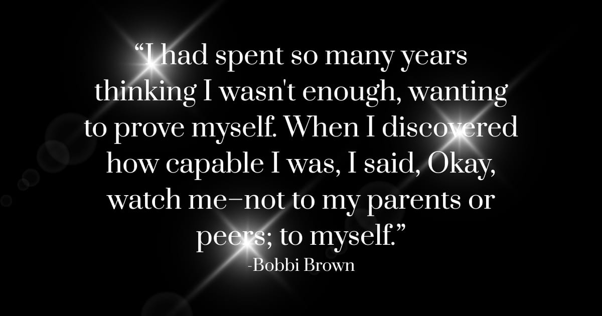 When we think of Bobbi Brown, the message that comes to mind is: mid-life, or any life stage, is the perfect moment to ask: What’s next, and how am I going to build it differently?